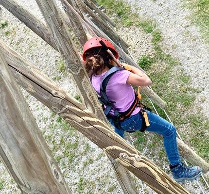 Aber es stimmt: Meine Kids haben definitiv ein Übermaß an Energie. Die muss raus. Da sie ständig kopfüber irgendwo hingen, wo sie nicht hängen sollten, haben wir ihnen ein Klettergerüst ins Zimmer gestellt, das gern beturnt wird. Im Garten gibt es ein Trampolin, Bäume und eine Schaukel, eine Hängematte, ab und an eine Slackline. So können sie ständig in Bewegung bleiben und ihre Energie loswerden.